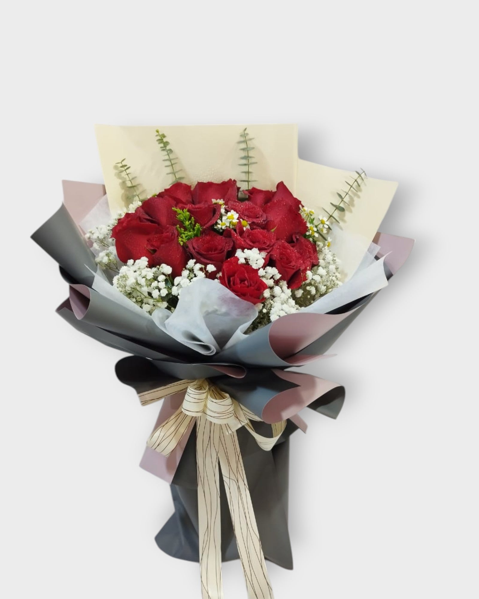 18 Stalks Of Red Roses with Baby Breath & Fillers